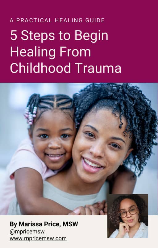 5 Steps to Begin Healing From Childhood Trauma is a practical healing guide to help you understand and heal from the impacts of childhood trauma created by social worker, Marissa Price, MSW.